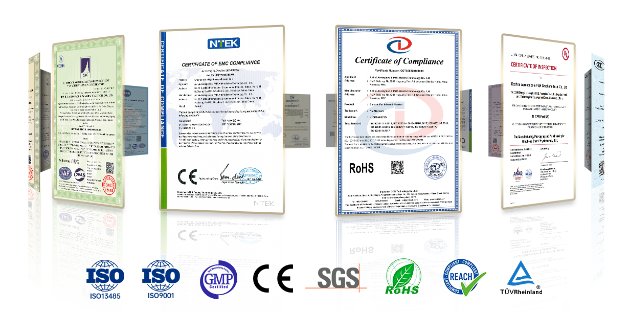 Authoritative organization certification, quality assurance global. As a National High-tech Enterprise, PMA Group has passed ISO9001, ISO14001 management system certification and the products passed RoHS, CE, FDA, SAR, CPSIA, NT, SIMT authority testing. Dezhou factory has also passed ISO9001, ISO14001, ISO45001, ISO13485 management system certification and GMP approval from UL.